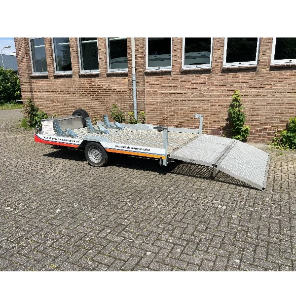 Onze robuuste motortrailer biedt voldoende ruimte en veiligheid voor het vervoer van tot wel 3 motoren. Ideaal voor het transporteren van meerdere motoren naar evenementen, vakantiebestemmingen of voor verhuizingen. De trailer is ontworpen met een sterk, stabiel frame en een gebruiksvriendelijke laad- en losmechanisme, zodat uw motoren veilig en eenvoudig kunnen worden geplaatst en vervoerd.